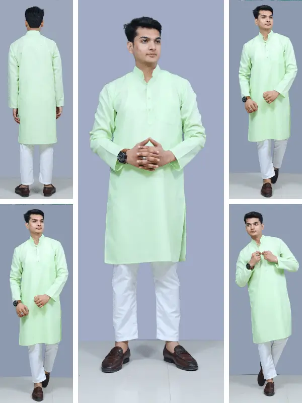 Introducing our stylish and comfortable kurta pajama set, perfect for any occasion. This ensemble features a man wearing a vibrant green kurta paired with crisp white pants. Crafted with attention to detail, the kurta is designed with a traditional collar and intricate patterns, while the pants offer a relaxed fit for ease of movement. Whether you’re attending a festive celebration or simply looking to elevate your everyday style, this kurta pajama set is a must-have addition to your wardrobe.